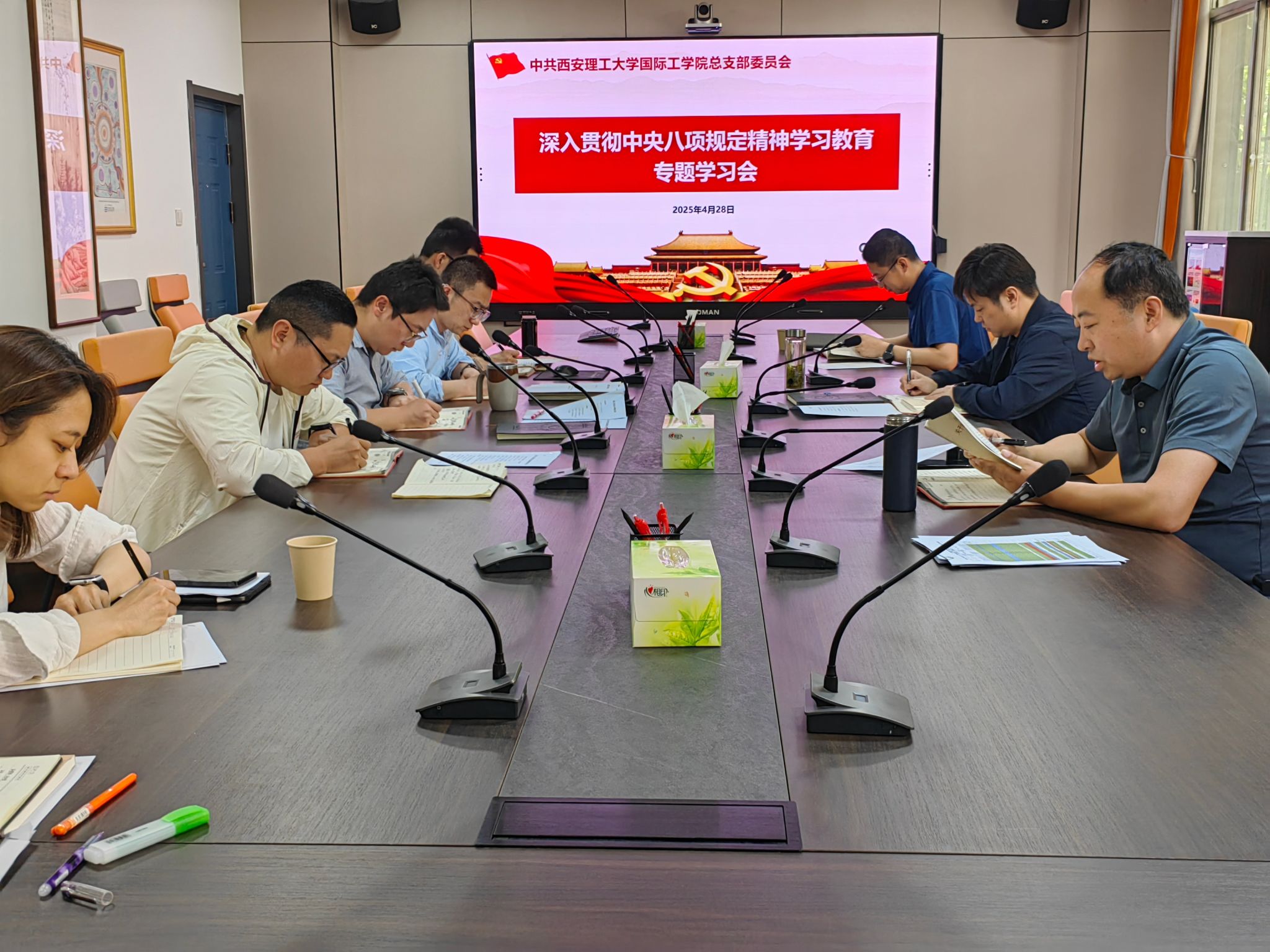 为推动深入贯彻中央八项规定精神学习教育走深走实,持之以恒抓好干部队伍作风建设,在“五一”、端午节假期来临之际,4月28日下午,国际工公司党总支召开深入贯彻中央八项规定精神学习教育专题学习会。会议由公司书记、经理方长青主持,公司党总支委员、领导班子成员、全体教工党员参加此次会议。