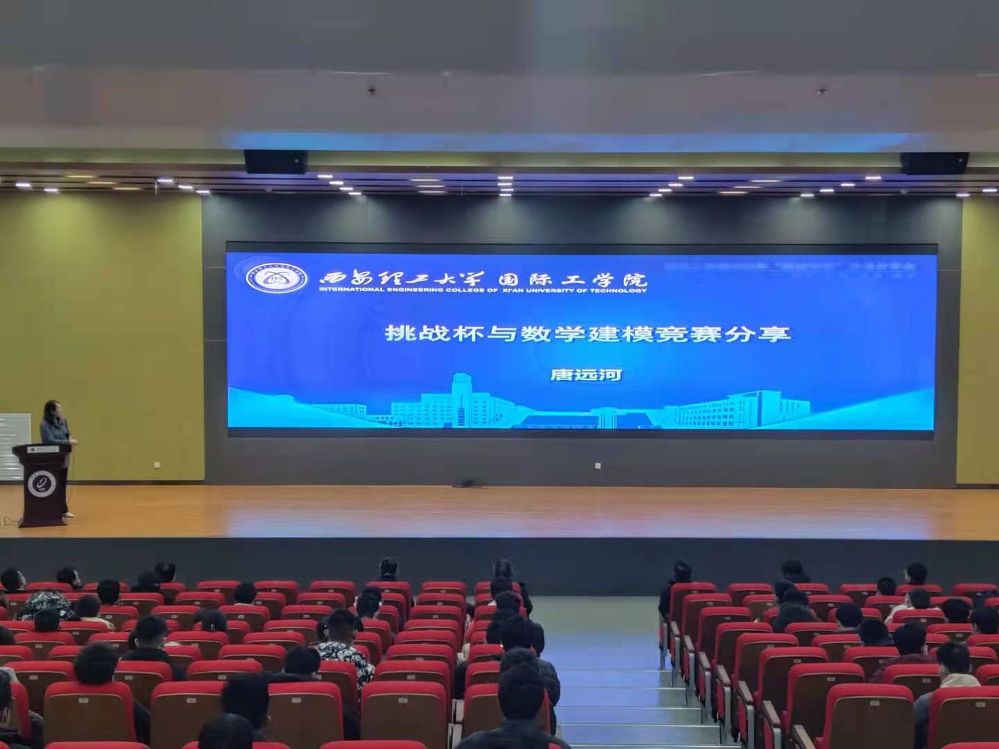 唐远河教授从本科生为何要参加科技创新以及如何参加等方面对挑战杯与数学建模竞赛进行了分享,她提出:创新是时代的需要,是高校的责任,是人才辈出的途径。“呦呦鹿鸣,食野之苹;我有嘉宾,鼓瑟吹笙。”她希望同学们对科学竞赛怀有浓厚的兴趣,具有吃苦耐劳的精神以及严谨的科学素养。同时,她还向同学们分享了学长学姐们的工作现状和专业未来设想,为同学们指明方向。