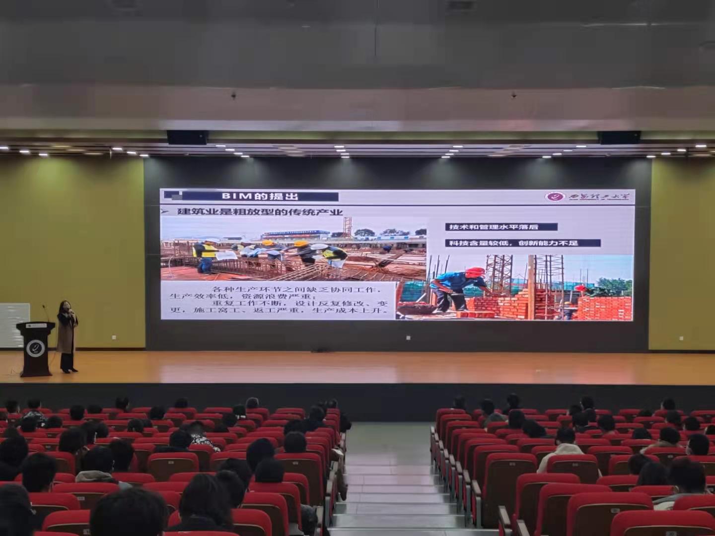 赵钦副教授为同学们展示了BIM及BIM建筑信息模型,同时,她又列举了一些运用BIM技术的建筑,如上海中心大厦、西安地铁五号线等。其次,她还谈到BIM的创新,这是一项关乎土木工程的信息化与智能化,多学科交叉研究的实践。赢得了同学们的阵阵掌声。