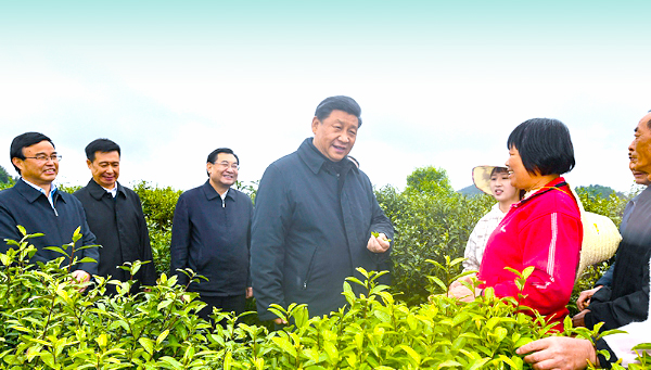 4月20日至23日,中共中央总书记、国家主席、中央军委主席习近平在陕西考察。这是4月21日,习近平在安康市平利县老县镇蒋家坪村女娲凤凰茶业现代示范园区,同茶农们亲切交谈。