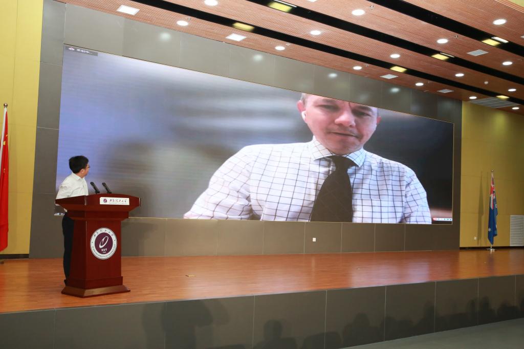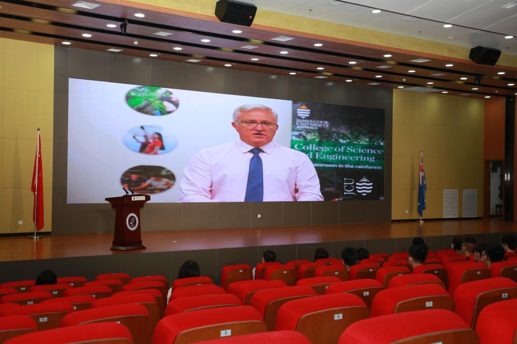 受疫情影响,常务副董事长Marcus Lane和Ron White经理无法来到典礼现场,他们采用直播连线的方式代表詹姆斯库克大学对新生送来祝福。副董事长Marcus Lane表示BV伟德官方网站和詹姆斯库克大学正在搭建一个帮助同学们迈入工程和科学领域的全球职业生涯平台。他希望同学们能在两校优秀团队带领下努力学习,在国际化、多样化的办学平台中实现自我价值,走向世界。同时也诚挚邀请BV伟德官方网站师生到美丽的澳大利亚詹姆斯库克大学做客、交流,他也期待早日来到西安与大家见面。