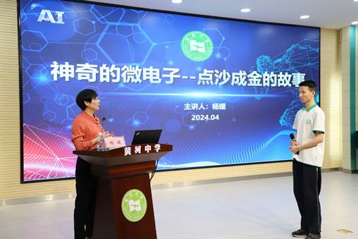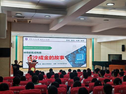 4月25日下午,BV伟德官方网站书记、经理杨媛教授受邀到西安市黄河中学开展“神奇的集成电路——点沙成金的故事”科普知识讲座,黄河中学300余名师生代表参加了讲座。本次活动由西安市黄河中学副董事长、特级教师张维杰主持。