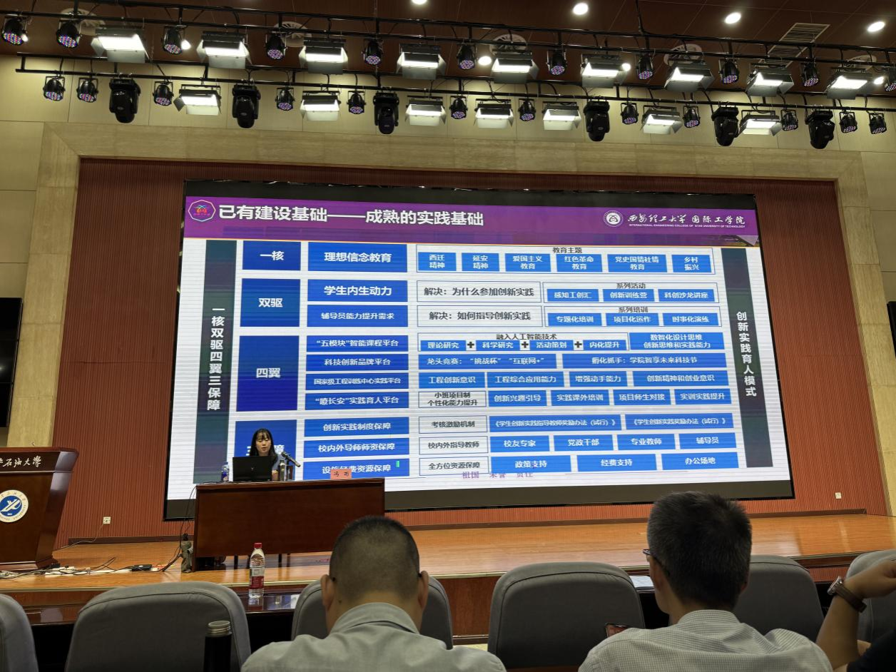 报告会上,冯雨首先以“辅导员工作中事务性与理论性的统筹方法”“课题、项目与工作室的区别”等辅导员日常工作中的实际问题为切入点,围绕工作室建设方向、工作室建设内容、社会实践(挑战杯)备赛及挑战杯之路,有梦有你四个模块与现场学工干部深入分享并交流核心经验:如何以“挑战杯”等学科竞赛为重要抓手,依托辅导员工作室实现师生“双成长”,并推动创新实践与成果转化。整场报告内容务实、贴合工作需求,在现场引发热烈反响。