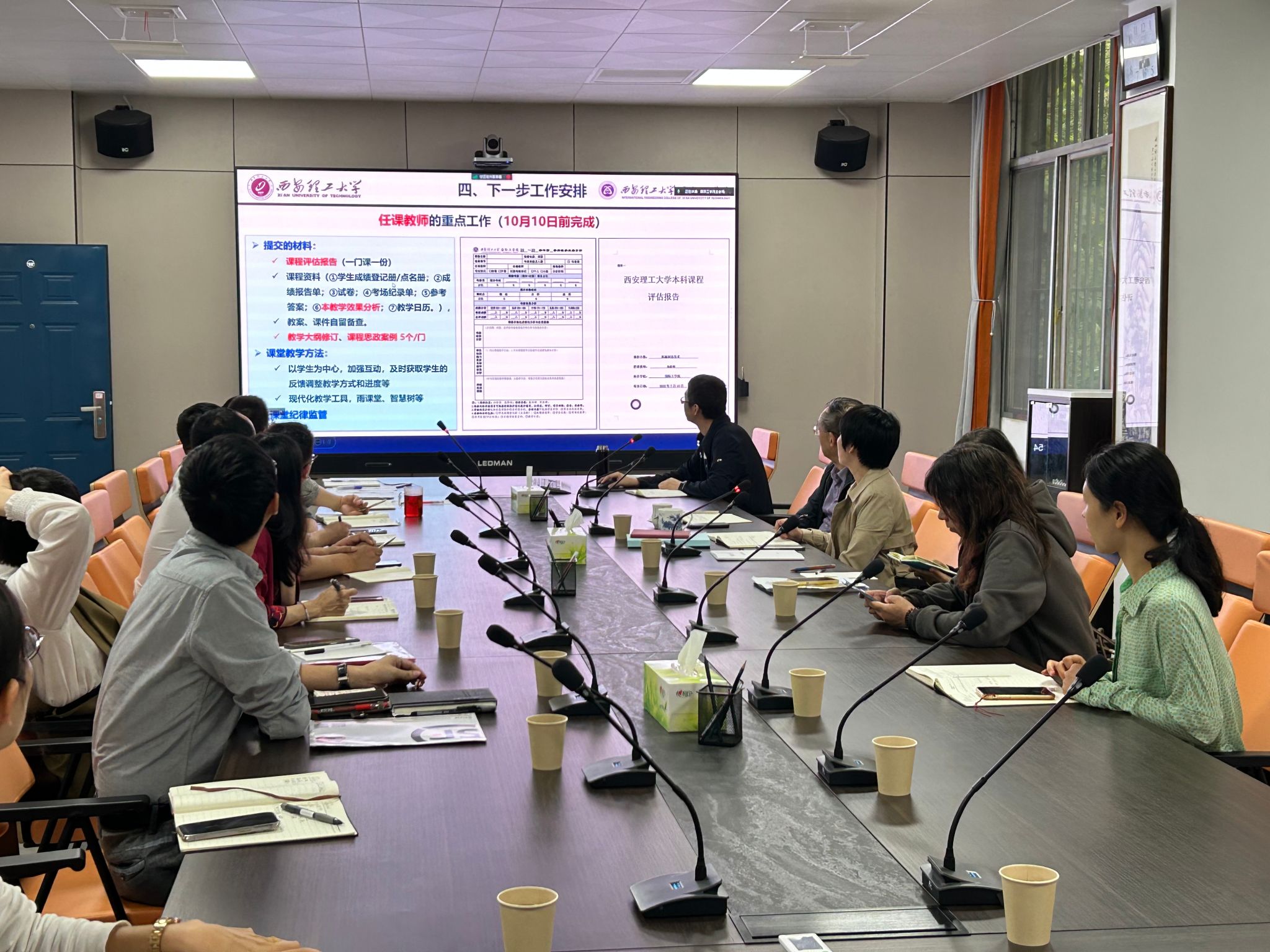 公司教学督导与委员会主任李言主任指出,审核评估工作首先应要确保思路的统一,全院各专业、各科室要紧密合作,共同推动审核评估工作的开展;其次,要确保教学资料的统一,将公司的教学特色和优势充分体现在审核评估材料中,将教学改革、中外融合、育人体系等各方面特色成效具体化。