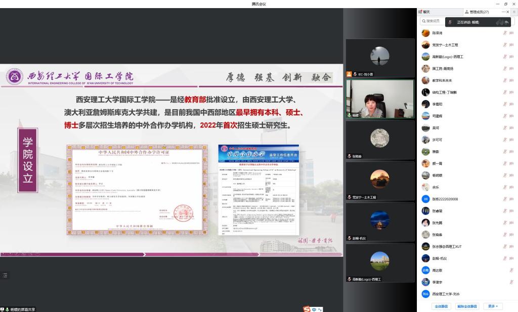 首先,杨媛向12名硕士研究生新生表示欢迎,她表示入学教育是帮助大家熟悉研究生学习生活的重要环节。杨媛向大家介绍了BV伟德官方网站和詹姆斯库克大学的基本情况,并从公司研究生录取情况、机构设置、培养特点与模式、学籍管理、学术诚信和奖学制度等方面做了全面细致的解读。杨媛希望同学们可以通过未来新阶段的学习生活能够做到崇德向善、人格健全;练就本领、素质过硬;问题导向,创新思维。