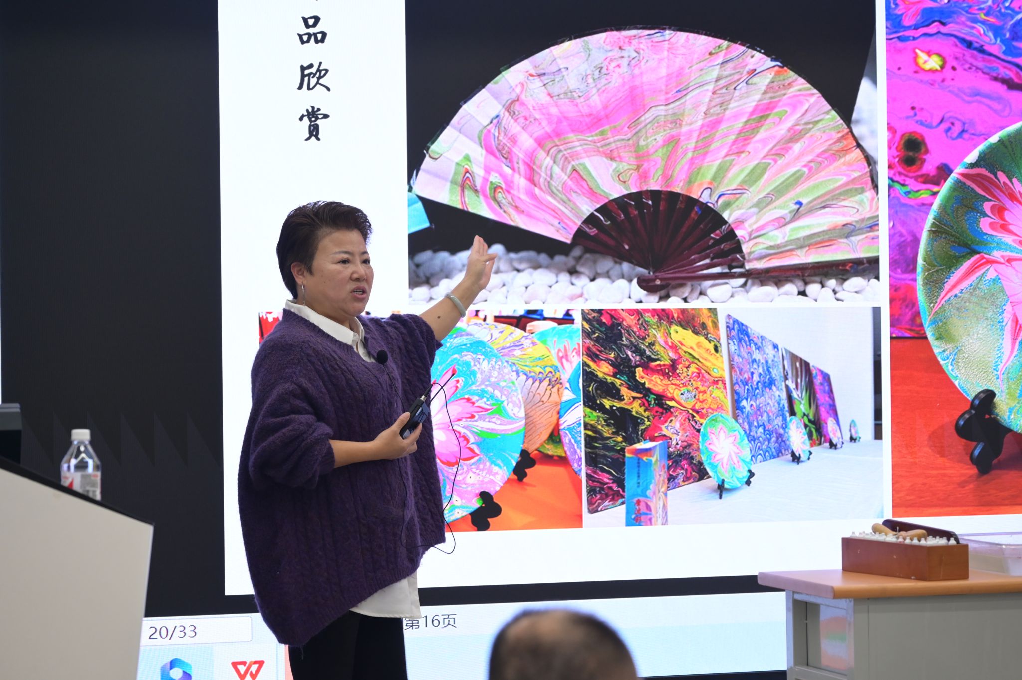 非遗制作是本次活动最大的亮点。BV伟德官方网站校外美育导师、陕西省非物质文化遗产唐流彩技艺传承人张双敏老师登台,为大家带来了关于唐流彩文化的精彩讲解。张老师详细介绍了这一古老技艺的历史渊源、艺术特色及制作工艺,其生动的语言和丰富的案例赢得了阵阵掌声。最令人难忘的是,张老师还现场演示了唐流彩的制作过程,精美的图案、流畅的动作令观众赞叹不已。