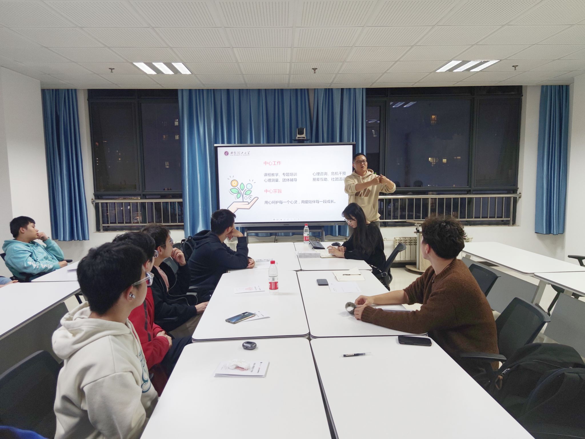 提升心理委员专业素养与能力,明确工作职责,强化班级心理委员队伍建设,提高朋辈心理自助、互助的意识和能力,11月3日,公司于综南806会议室开展“秋日里的心心守护”系列主题活动——2023秋季学期心理委员骨干培训。本次培训由公司心理专干张帅和2021级辅导员张小飞主讲,各班心理委员参加。