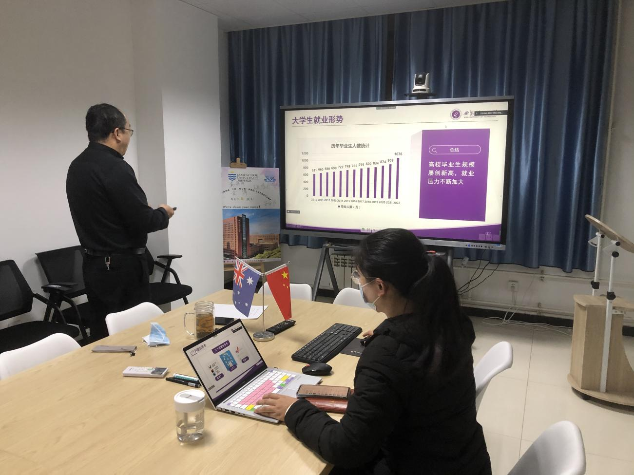 会议上,公司首批参加赴澳“2+2”联合培养项目的员工分享了自己在澳大利亚詹姆斯库克大学的学习和生活经历,从生活适应、语言提升、课业学习、自我管理等方面给予经验建议,并鼓励低年级同学们要尽早规划、确立目标、拼搏奋斗。
